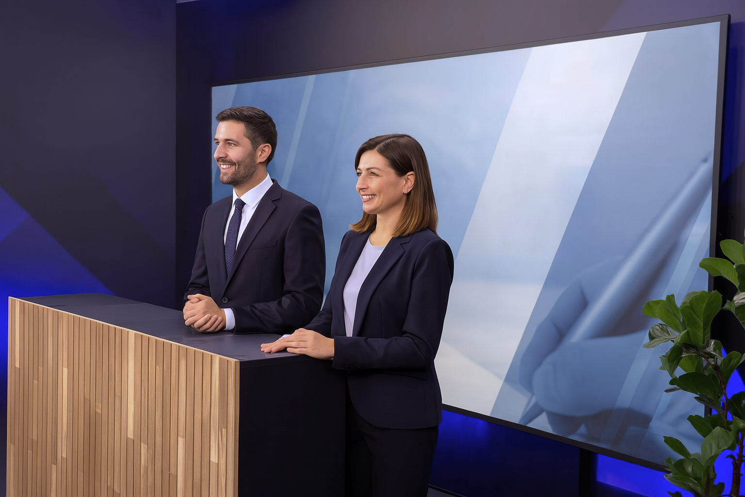 Ny, stor 300" LED-skjerm i vårt studio – perfekt for profesjonelle sendinger, presentasjoner og digitale arrangementer. Skjermen gir en imponerende visuell ramme for ditt budskap.✨ Nye lysinstallasjoner i Nordkapp og Tjuvholmen – Vi har nå fått LED-lys som gir foredragsholderne perfekt belysning uten skygger – noe som gir en klar og profesjonell visuell opplevelse for alle digitale deltakere.Som eneste konferansesenter i Oslo har vi egne streamingteknikere som følger deg hele veien – ingen mellomledd, bare direkte og smidig oppfølging. Dette gir oss en av markedets mest konkurransedyktige priser.Bedre kvalitet, enklere prosess og lavere pris – alt på ett sted! Ta kontakt med oss i dag for å booke ditt neste studio- eller hybridarrangement, og gi deltakerne en opplevelse som setter varige inntrykk.